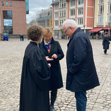 Auf dem Römerberg in der Frankfurter Innenstadt hat ein Team von Pfarrerinnen am Valentinstag Passant:innen gesegnet.